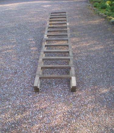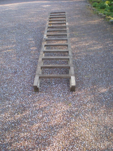 Die Leiter hat eine Gesamthöhe von 4,00 m und ist 0,60 m breit. Sie ist als Aufstieg zu den Kanzeln gedacht.