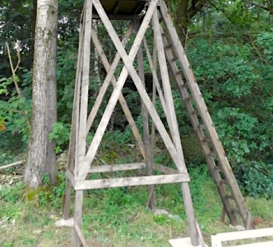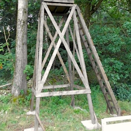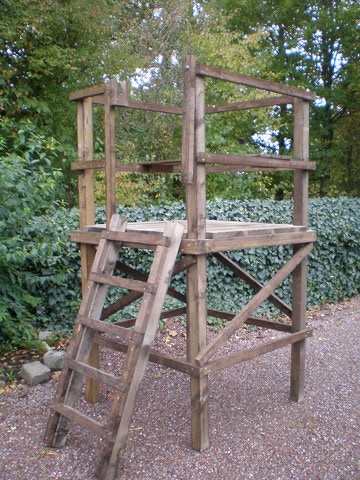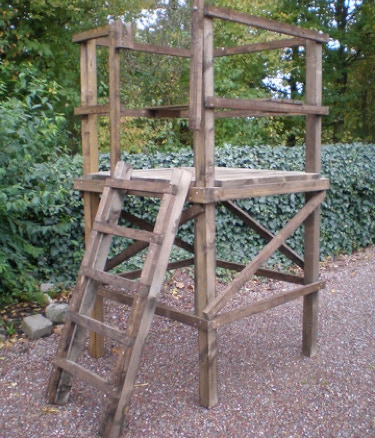 Das Kanzelgerüst mit Podest und Leiter hat eine Höhe von 3,00 m. Dies bedeutet man hat eine Sitzhöhe von etwa 3,50 m.